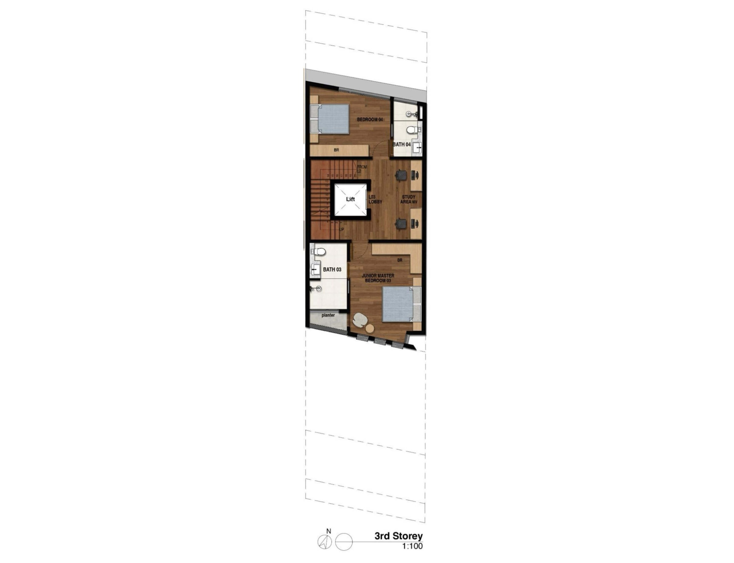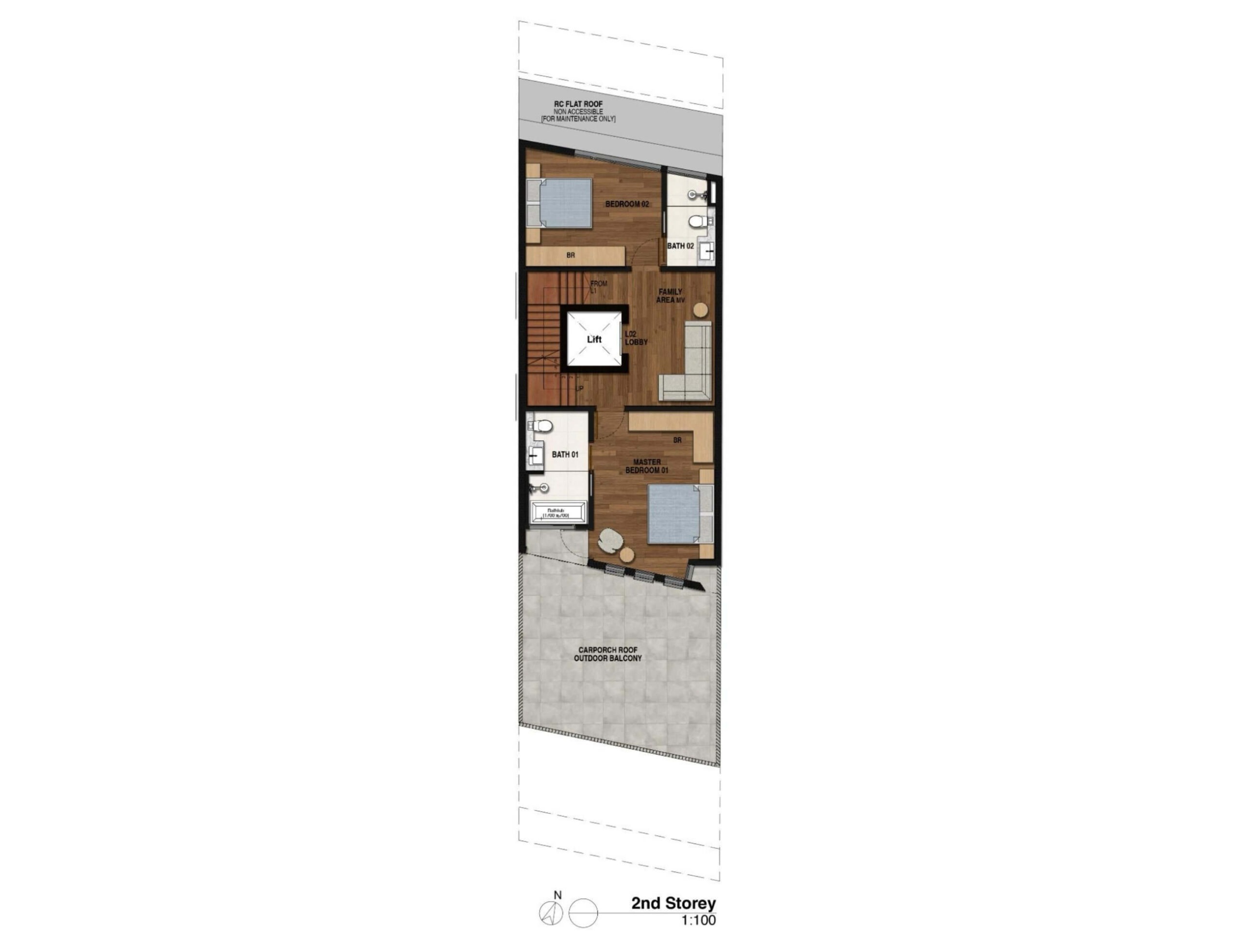 A Brand New 3 Storey Intermediate Terrace with a Lift and an Attic Orientation – South-East Facing